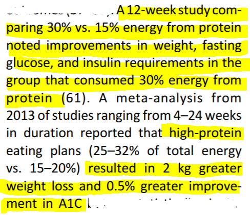 Escondido em outra tabela, temos um dos parágrafos mais importantes deste texto. Trata-se da admissão clara de que low-carb é a estratégia nutricional 1) mais estudada dentre TODAS no contexto do diabetes e 2) é a que tem maior evidência na melhora da glicemia. Eis o trecho, seguido de sua tradução: